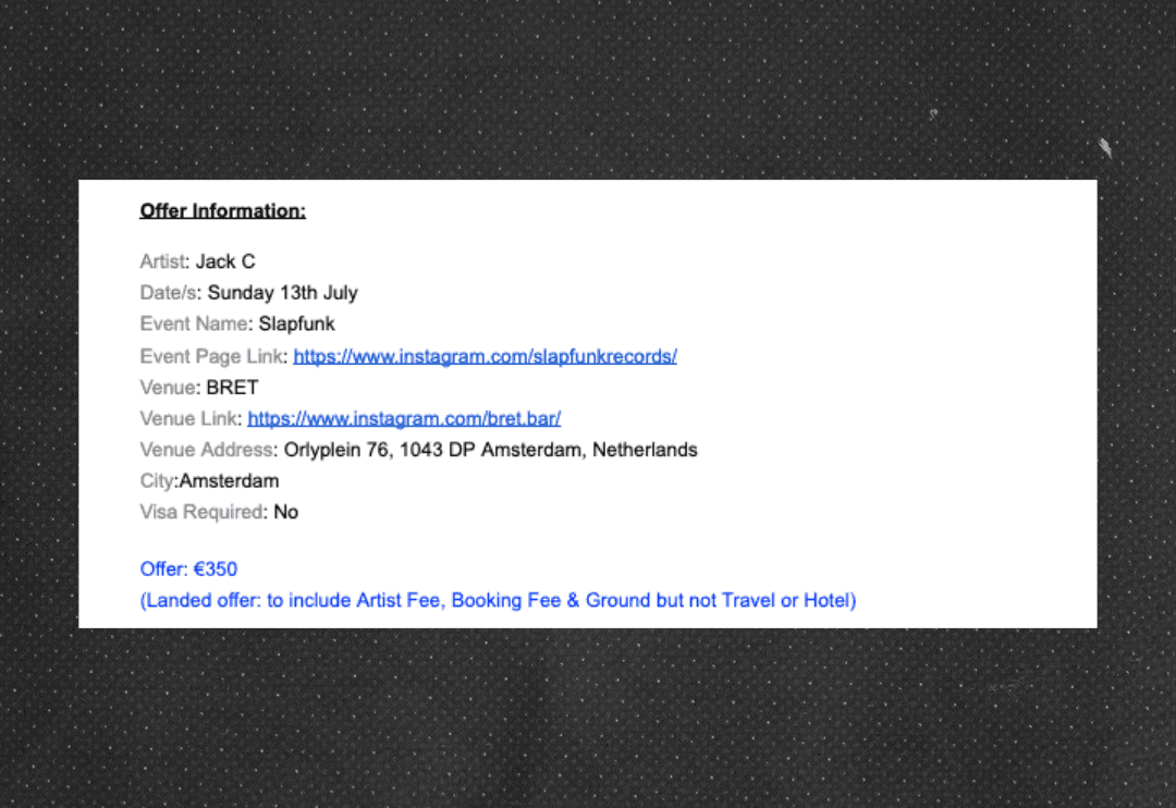 I met Andrew at Amsterdam Dance Event while I was DJing in 2022. He has been supporting me ever since, encouraging me and helping me navigate my career. After leaving my booking agency in summer of 2024, Andrew's guidance helped me to start my own brand 'Nostos', throw my own events and helped me join my new booking agency ahead of my move to Berlin. Thank you, Andrew for all your help so far!